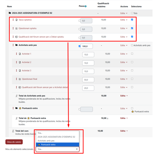 Captura moure elements a categoria